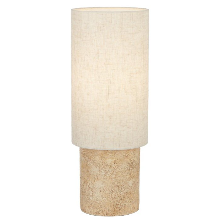 The Minra table lamp features a cast‑stone cylindrical base paired with a softly textured fabric shade, giving it a clean, modern look with warm, organic character. Its minimalist silhouette fits easily into contemporary, Scandinavian, or rustic‑inspired interiors. As an indoor lamp, it works well on bedside tables, consoles, or living‑room side tables, providing gentle ambient lighting that adds both function and a natural, sculptural touch to a space.